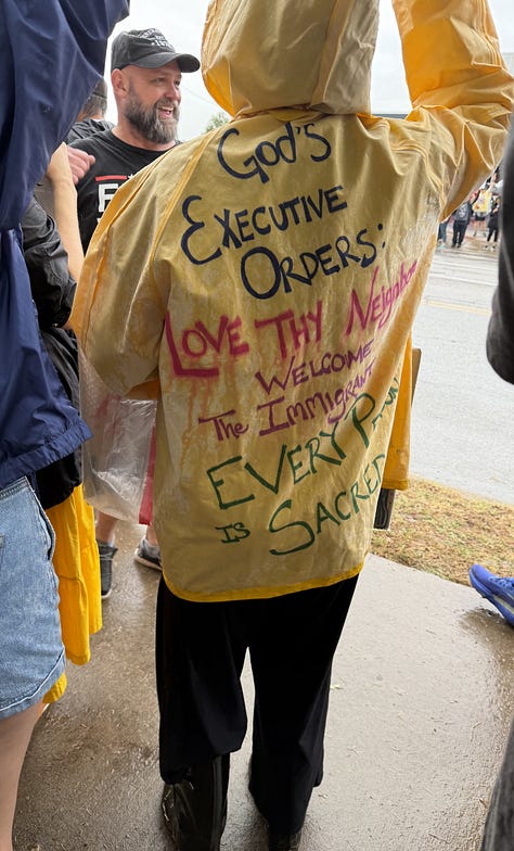 There were signs to “Love your neighbor” and “Your voice matters.” Some warned against Christian nationalism and to fight against fascism and authoritarianism.